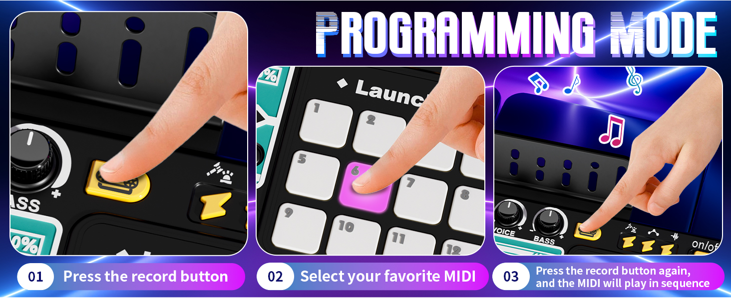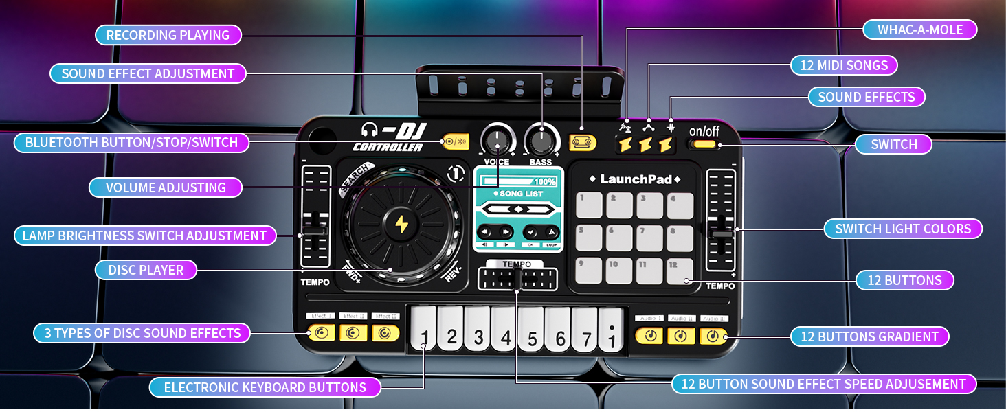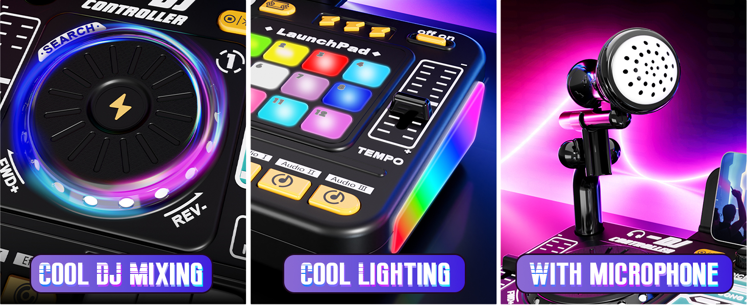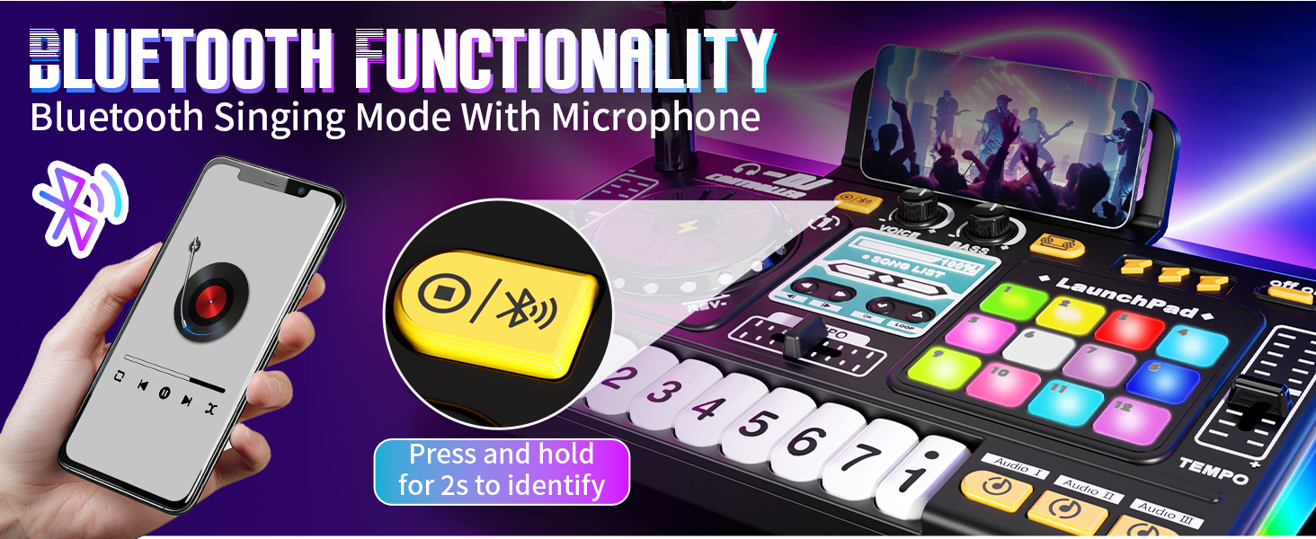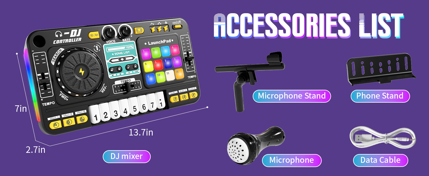 - 【Create & Record Music】Children can create custom sound effects, mix beats, and use the recording and programming mode. From adjusting tempo and sound tuning to performing live, this DJ set for beginners unlocks creativity and helps young kids develop their musical talents